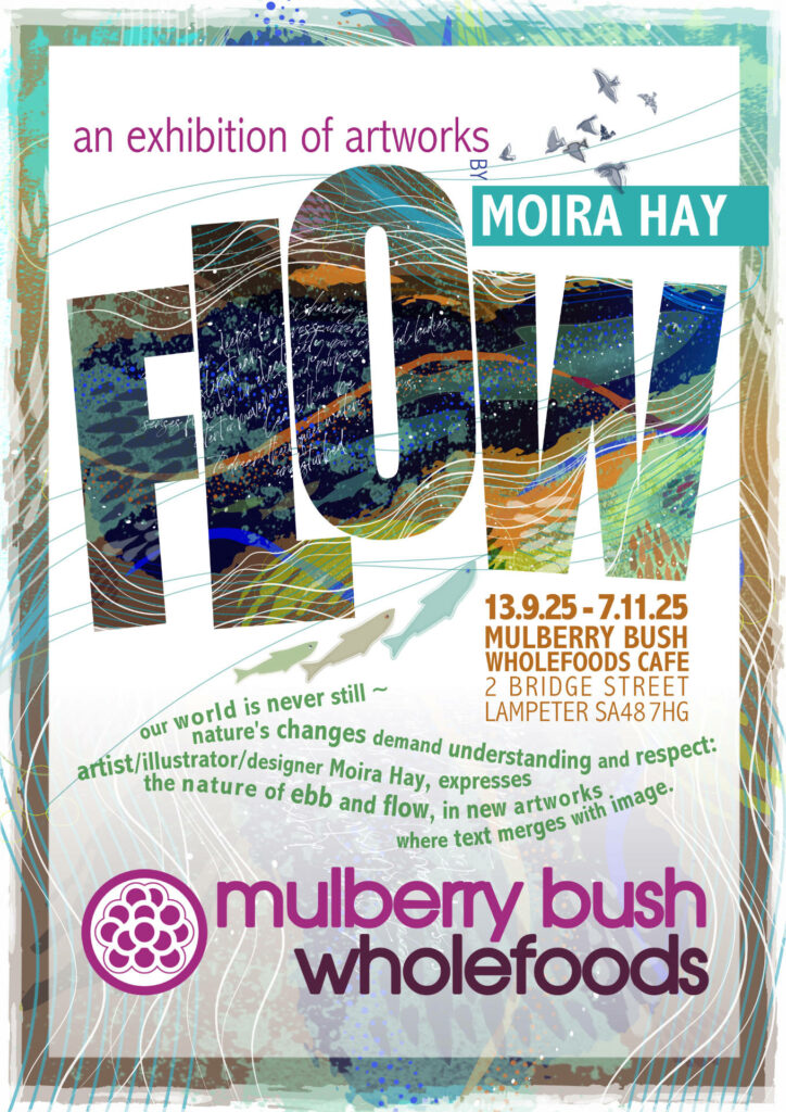 Moira Hay was born in a former workhouse on the edge of Hampstead Heath, N.London, raised by adoptive parents in Surrey where urban meets rural, lived on boat on the Thames as a student, then followed the river over Kew bridge to a flat in Chiswick, and on to a little house near Teddington Lock; again west to a village near Guildford on the River Wey and finally further west to rural Ceredigion, where she has lived since 1988. The flow of life is made physical when her local river makes an occasional visit inside her home; they co-exist until it returns to its usual course.