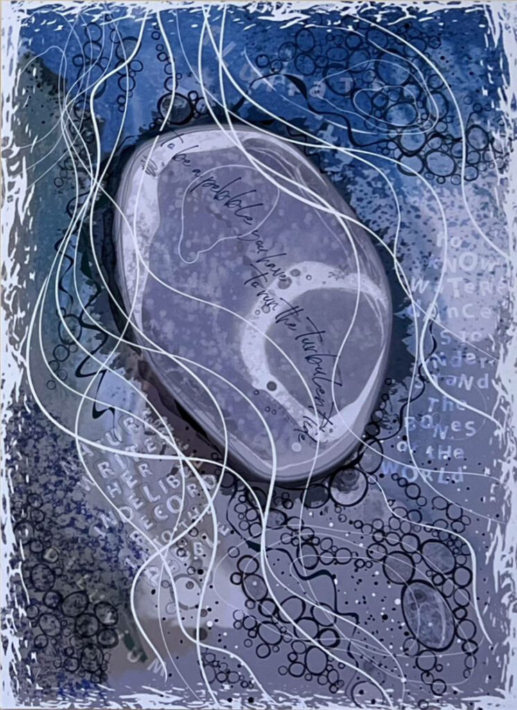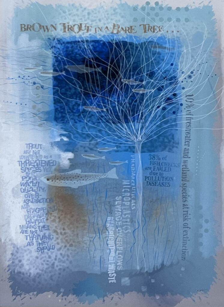 As an art student at Kingston Art School (Foundation course) then Wimbledon College of Art (Diploma Course), she revelled in all art disciplines, finally settling on Illustration and Graphic Design, working her way through employment with a design studio, publisher and an ad agency, while producing commissioned illustrations in her spare time. In 1977, she became fully freelance, working in a range of different styles for a broad spectrum of clients including most of the London publishers, corporate companies, ad agencies, design studios and individuals in the UK and Europe. Retirement’ from commissioned work enabled a change, allowing her to express her love of merging image and text – on her own terms – within a long-held context of eco-awareness and respect for the natural world – which we must nurture in return.